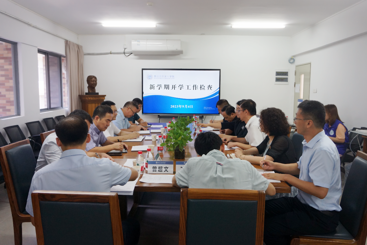 本网讯 9月4日上午,校党委书记、校长石佑启率党办、校办主任谢伟光,发展规划部部长陈彦辉、科研部部长陈平、党办、校办副主任李韬,莅临太阳集团指导新学期开学工作。全体院领导和学院挂职干部、学院办公室主任等参加汇报会。会议由学院党委书记王则唐主持。
